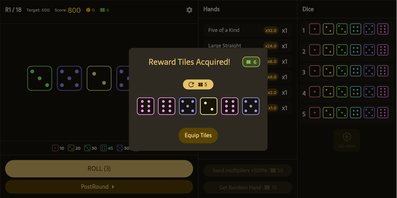 - Add new item: Elite Multiplier (2x score if any level 6+ face on roll)